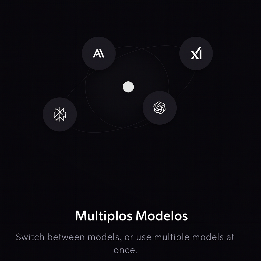 Você pode usar qualquer modelo de IA suportado por OpenAI, Anthropic, Google, Perplexity, xAI, OpenRouter ou um modelo suportado por Ollama
